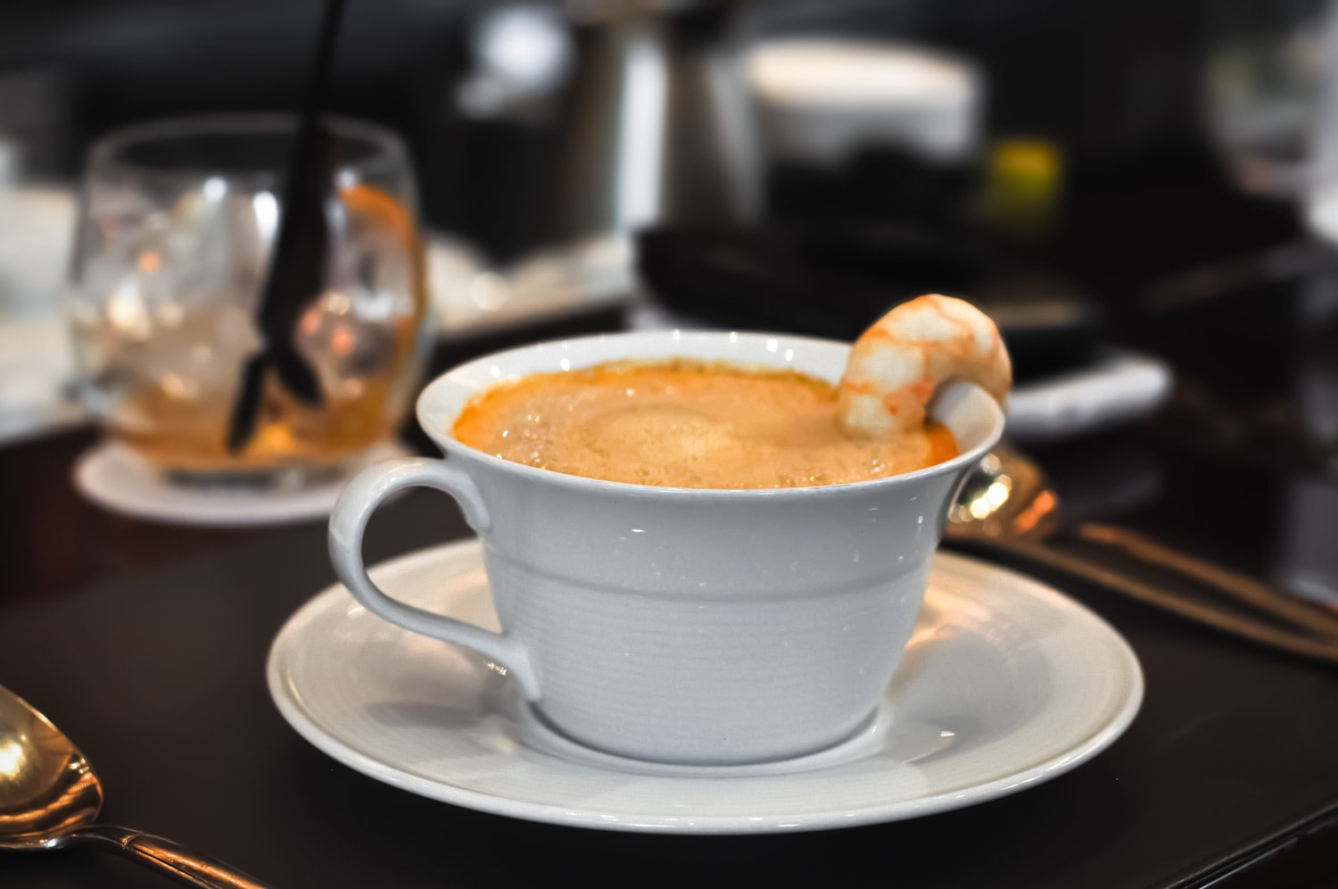 Interior photos © Ammo Joice WangSpiced Old Fashioned Buffalo Trace Bourbon, Orange, Cherry, Anise, Cinnamon Stick, Cloves, and SyrupOne of the unique dishes at Ammo is the Scampi Cappuccino. This delightful blend of brandy and scampi foam is a surprising treat for your taste buds. The dish is a play on the traditional cappuccino, with the rich flavors of the scampi foam complementing the brandy for a truly unique dining experience.Asia Society - Ammo Restaurant