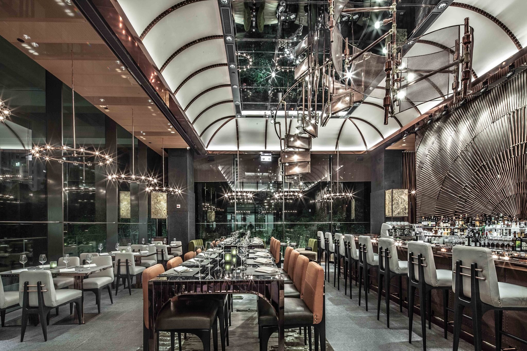 Architect Joyce Wang's design for Ammo, inspired by Jean-Luc Godard's Alphaville film, is a visual marvel. The restaurant is a stunning six-meter-high glass box, nestled on the lower level of the Asia Society, offering a unique dining experience.