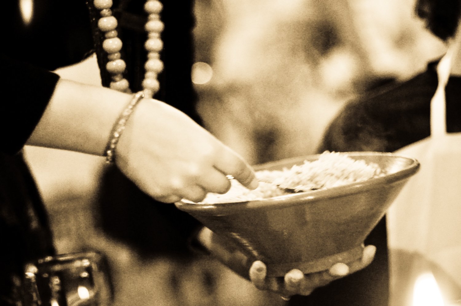 Then came Chatamari, a Nepali rice crepe filled with vegetables, along with vegetable Momos (traditional Himalayan dumplings), accompanied by a sweet and spicy mango chutney. At this time, the traditional alcoholic Rakshi was served from a copper decanter. While this millet-based alcohol is integral to Nepalese religion and tradition, it is not enjoyable, except as a test of your inner strength, which might be what it is used for in ceremony!