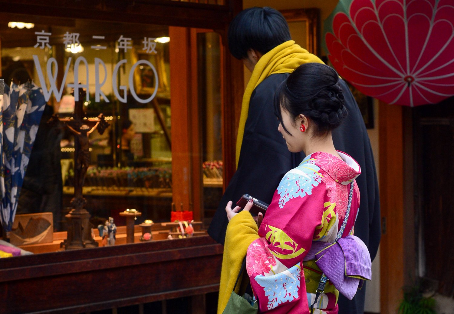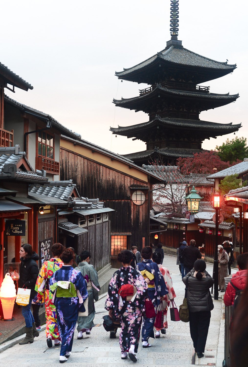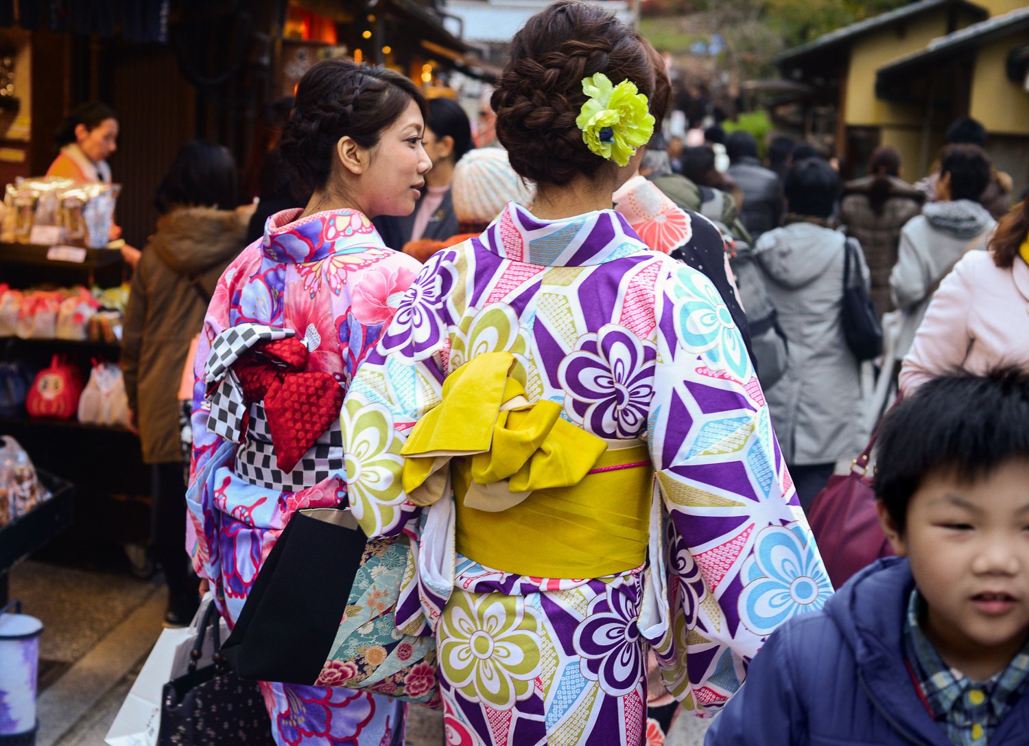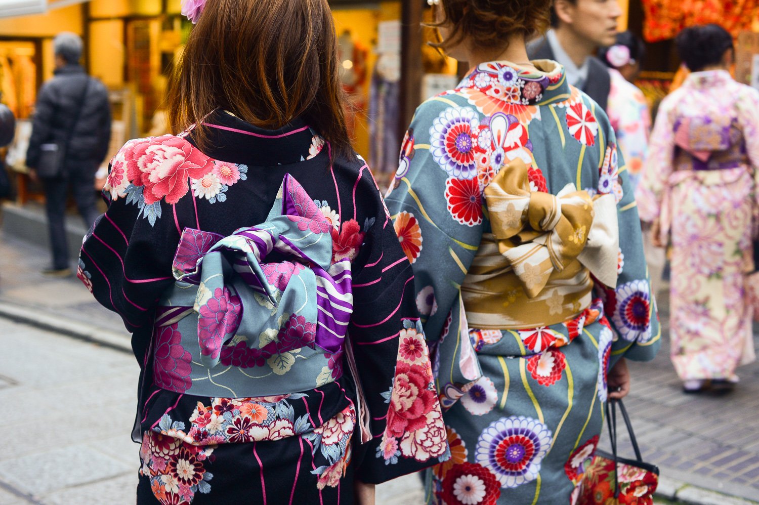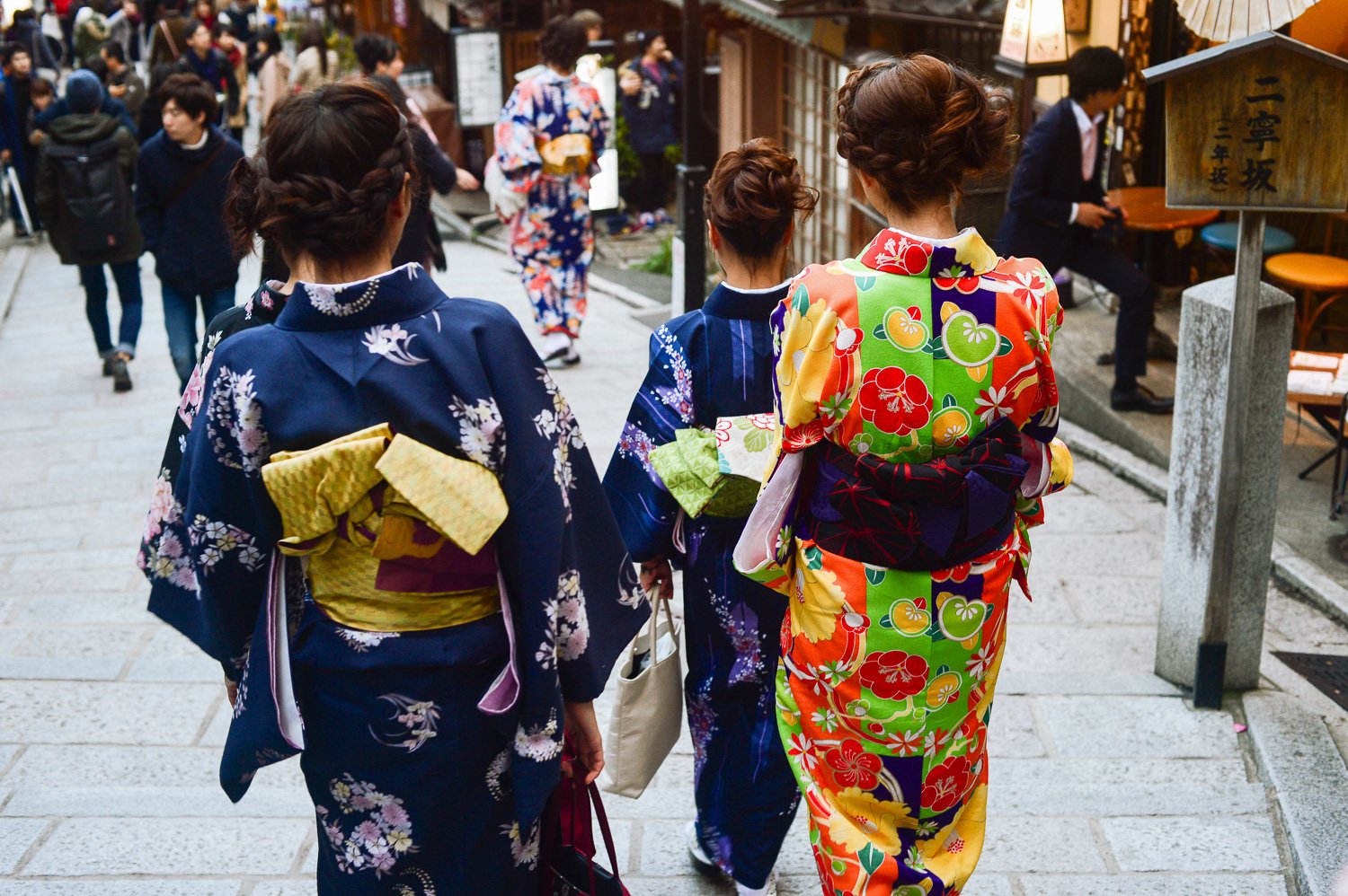 - Kimono rental: If you want to do something fun, you can rent a Kimono (his or hers) at Kyoto Kimono Rental at the beginning of the Higashiyama walk. Most Japanese women and a few men rent Kimonos to tour Kyoto and other historical cities. It is super cute and lends itself to wonderful photos! The rental house will also style your hair and accessorise. you! Returns are straightforward. (If you choose this option, also bring trainers in your bag, just in case.)