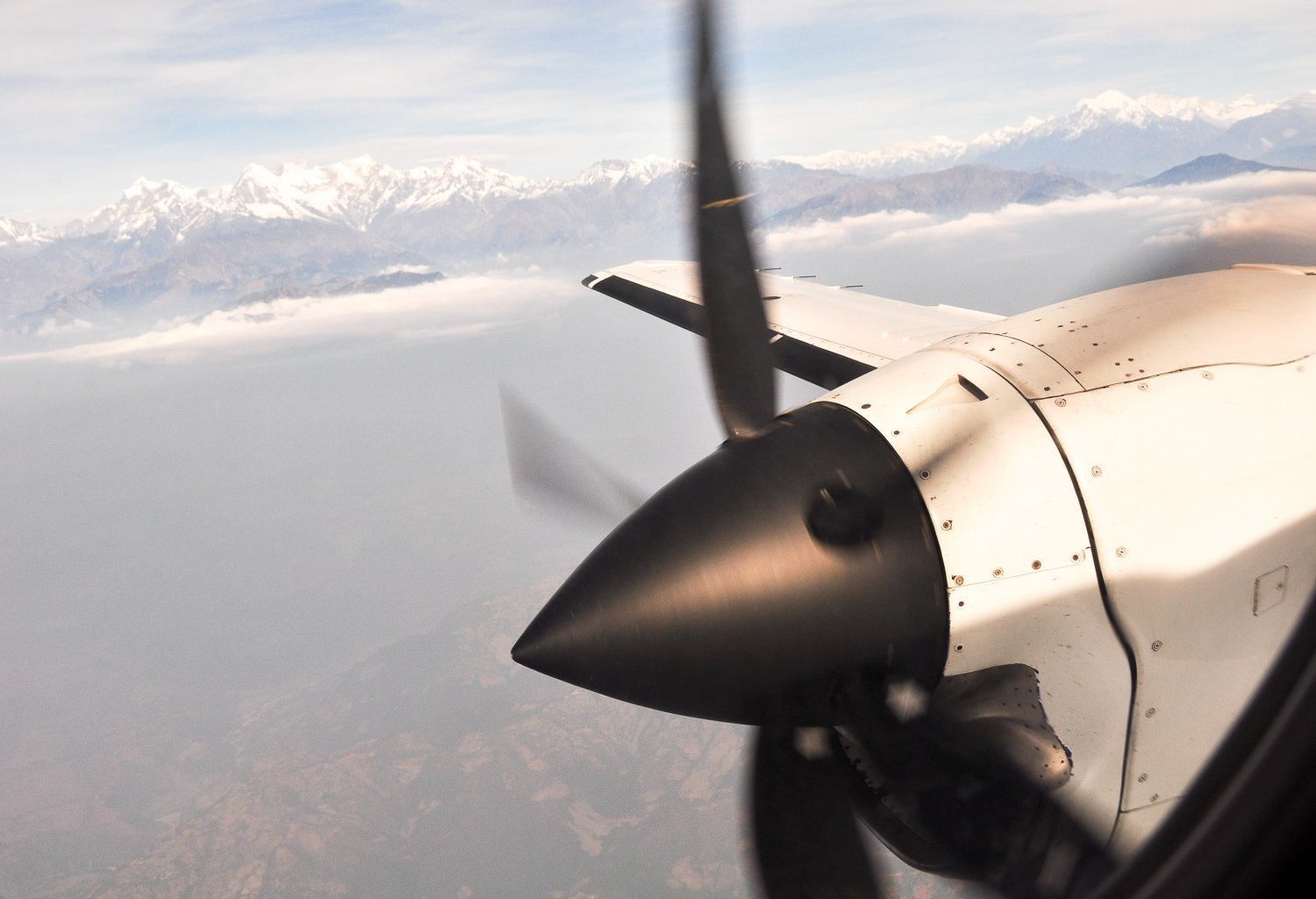 First is getting there. The planes that take you to the nearest airstrip in the town of Jomsom are small 10-seater prop planes that feel very, very tiny compared to the VERY, VERY large mountains you're flying through. Thankfully, they are operated by a highly skilled pilot! The journey is extremely windy, a white-knuckle ride that is not for the faint-hearted. Our plane couldn't fly straight for most of the flight; it was pushed up the valley in a diagonal position. Sort of like a Labrador whose hind legs are faster than their front, and they run with their body a quarter turn from true. Now, imagine that dog as a plane with you inside, smelling of petrol, with the ground far below, the wind screaming in your ears, and mountains all around ... I have a vision burned in my mind of our pilot, a tall Nepalese man in a crisp white shirt, a smart blue jacket, and aviator shades, arms ram-rod straight, hands clamped, eyes forward, rock solid ... his stoicism gave me confidence in our survival.