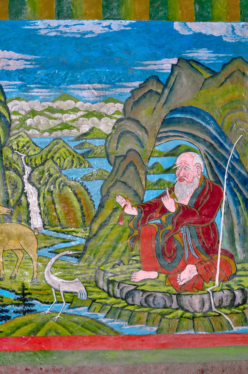 The Red Lodge houses a Chapel with beautiful wall paintings, an idol of Maitreya, and a very impressive Mandala. It is as lovely a place as is to be found. You are well beyond mod-cons up here. This fact sinks in when you realise that everything you see was hand-carried over the same trek that would have been arduous by plane and car.