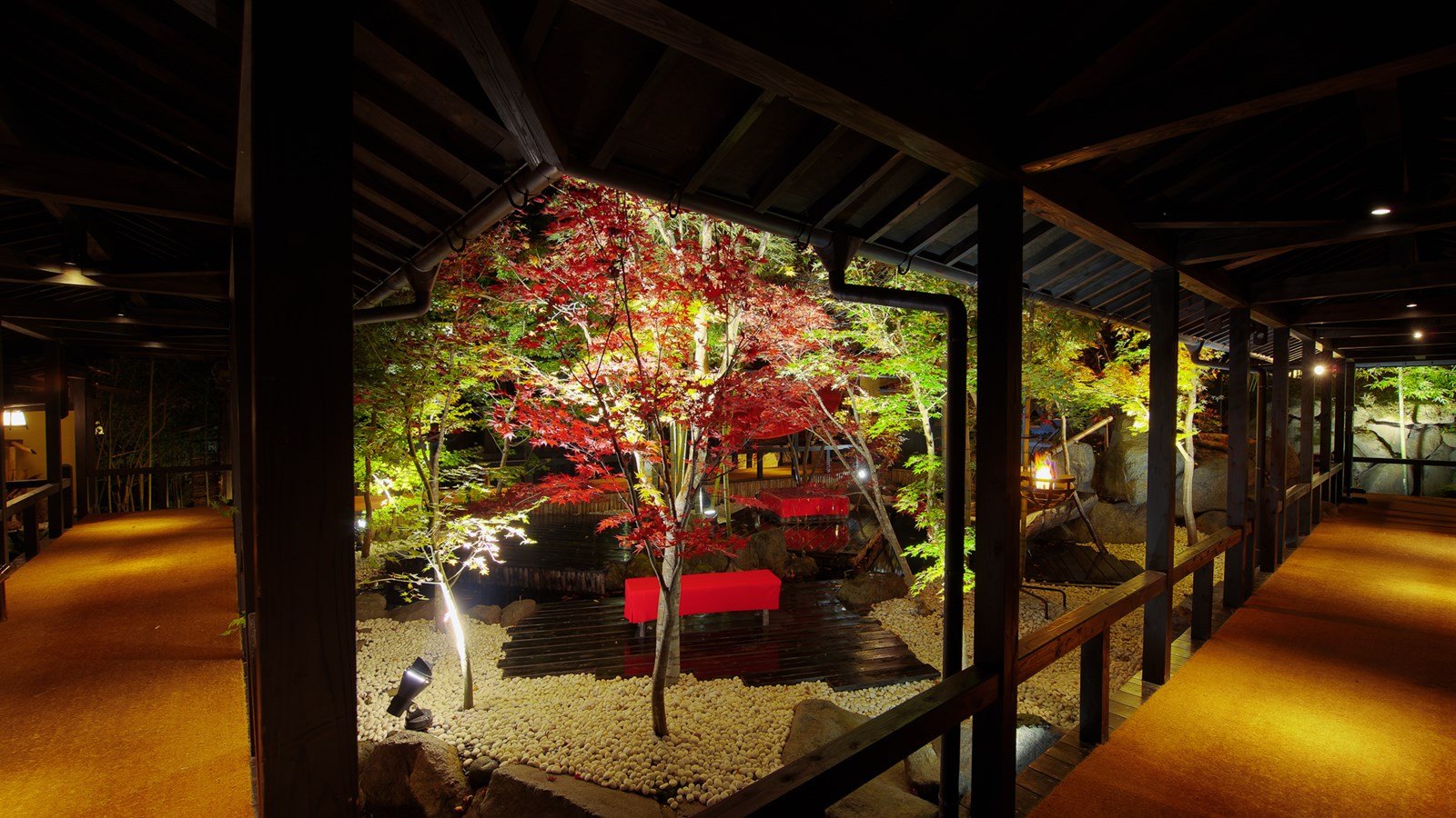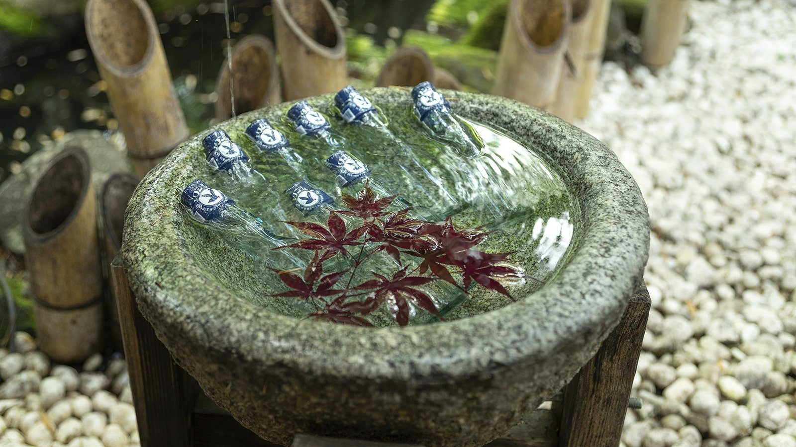 Each room has its own private onsen, allowing you to enjoy a relaxing hot spring bath just for yourself. There are also some larger baths available for reservation. Each of the stunning shared baths includes a cosy changing area with a variety of hot and cold drinks, like sake and beer, plus an oven offering warm towels to enjoy after your soak. As you stroll around the beautiful grounds, keep an eye out for delightful surprises — complimentary snacks such as sodas, water, and tea are scattered along the paths. There’s even a freezer with delicious ice-cream pops for an extra treat!