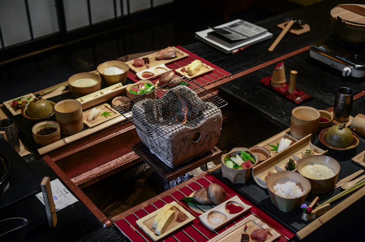 Meals here are events in themselves. Breakfast is generous, and dinner is a full Kaiseki experience — a sequence of seasonal dishes that feel like art performances. Each plate is a balance of colours, textures, and flavours; even the choice of dishware reflects the mood of the forest outside. Steam rises like stage smoke, garnishes echo the seasons, and flavours are precise yet soulful.